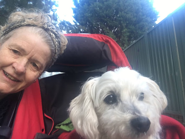 Jack and I out for a stroll with the pram- he howls if we leave him behind.