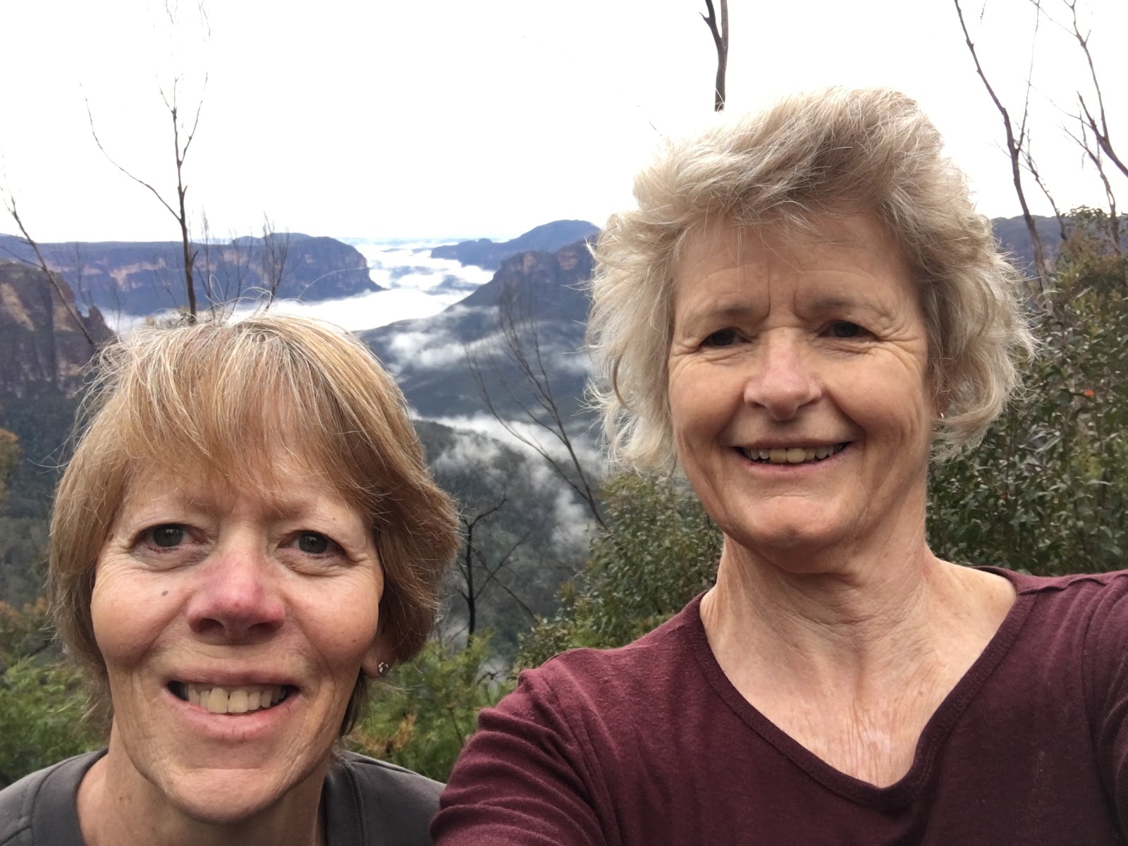 This was looking down at the Three Sisters- nothing to see. The fog was very thick as we headed back into Katoomba, all gone back in Blackheath 10 km away!
