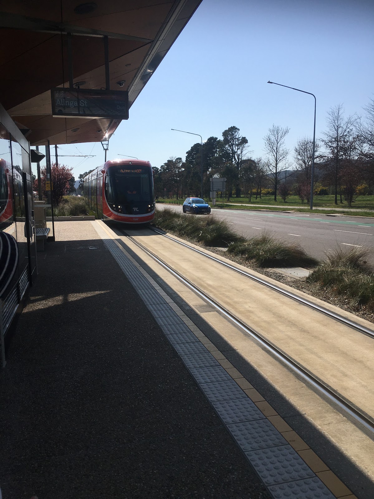 Floriade started last week so the Tuesday Girls played tourist in their own town. We live on the Southside and the Light Rail is on the Northside and we haven't been on it, so decided it was time. Deb was dog and house sitting at her dad's place in Watson, so Kerrie and I drove there, we walked down to the Light Rail stop and caught the tram into Civic. We were a bit disconcerted when we got on the tram and the young people in the priority seats got up to give us a seat- that means we look old to young people- oh dear! The tram was well patronised and we didn't have to wait long to catch it.