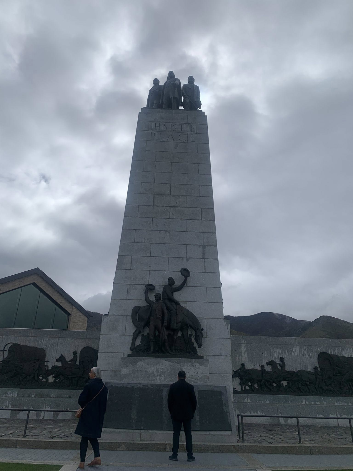 We then headed south to the This is the Place Monument, which is where the Mormon Pioneers first came into the Salt Lake Valley, after fleeing persecution in the eastern states. It was a cold, wet day, but we were mainly travelling , but the rain stopped when we to to the Monument area.